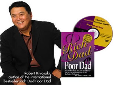 Sau đó, Kiyosaki đã viết một cuốn sách làm nên tên tuổi của ông. Đó là cuốn sách có tựa đề Rich Dad Poor Dad (Tạm dịch: Cha giàu, cha nghèo). Cuốn sách này đi ngược lại với những lời khuyên mà cha của Kiyosaki dành cho cậu từ thuở nhỏ là “Hãy tìm một việc làm tốt, làm việc chăm chỉ và tiết kiệm tiền”. Kiyosaki gọi đó là lời khuyên của một người cha nghèo và ông đưa ra lời khuyên của một người cha giàu là “Hãy học cách quản lý rủi ro và khiến đồng tiền phải phục vụ anh”. Rich Dad Poor Dad sau này đã được nhân bản thành một loạt sách 18 cuốn, được xuất bản ở 90 nước trên thế giới và bằng 45 ngôn ngữ khác nhau. Bộ sách này cũng trở thành một trong những cuốn sách bán chạy lâu nhất và nhờ nó, Kiyosaki đã được trang web kinh doanh sách trực tuyến Amazon.com đưa vào danh sách 25 tác giả nổi tiếng nhất trên thế giới.