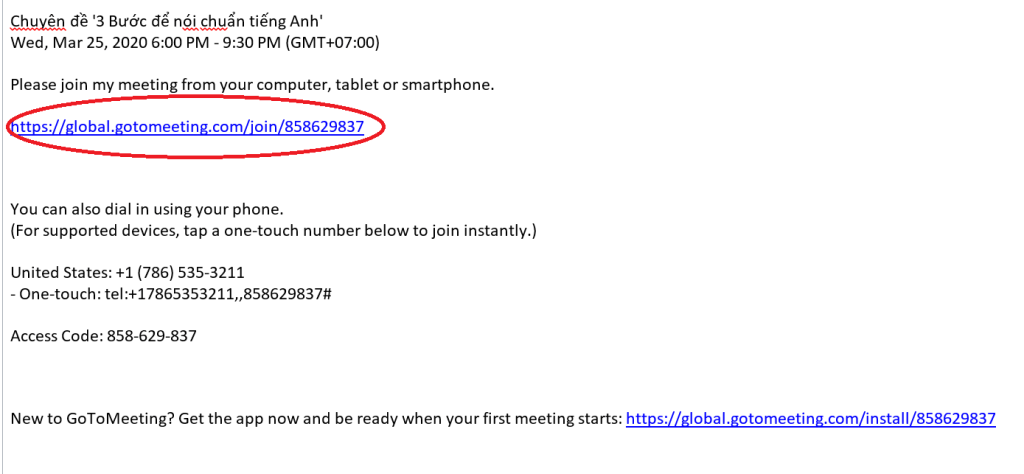 Sau đây là hướng dẫn tham dự một sự kiện sử dụng phần mềm Gotomeeting: