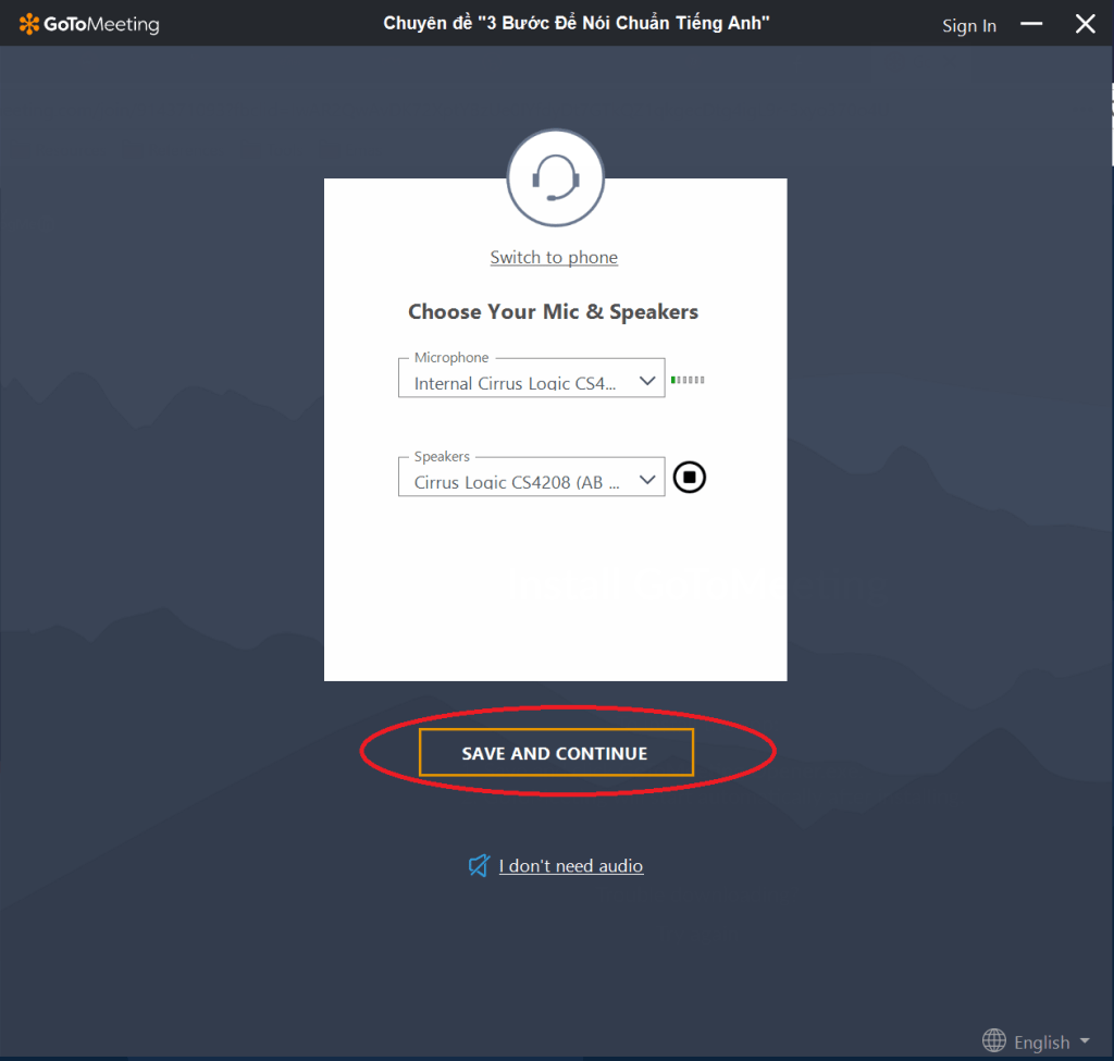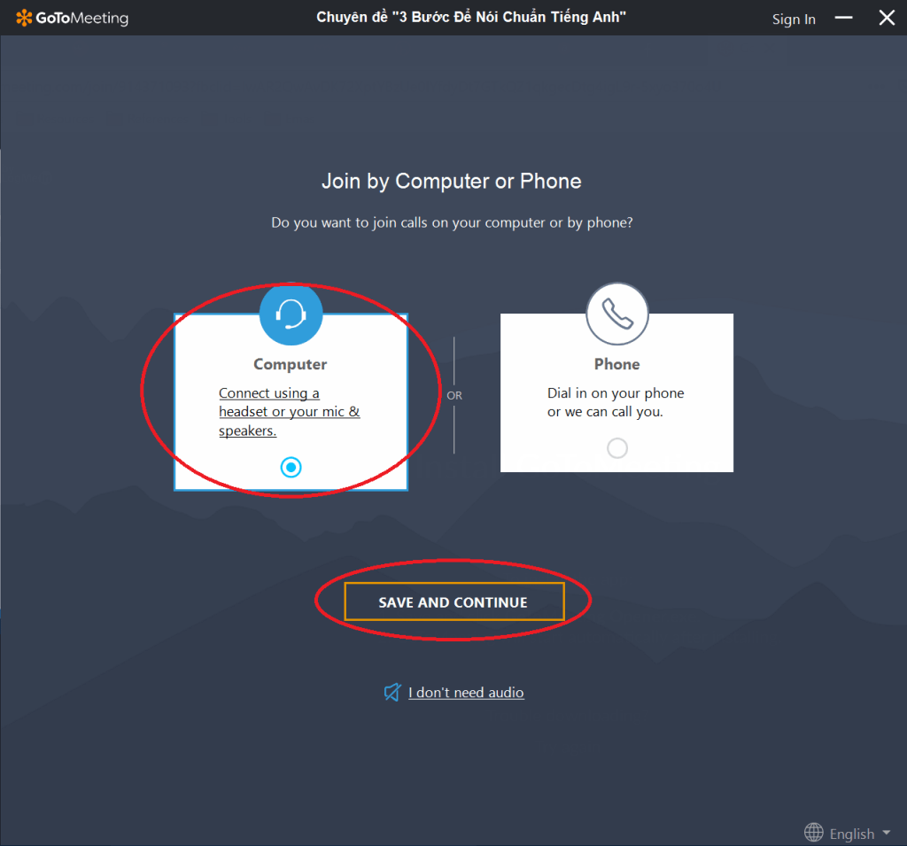 Có thể bạn sẽ được yêu cầu tải ứng dụng Gotomeeting về máy tính của mình. Vui lòng xem hướng dẫn ở phần trên.