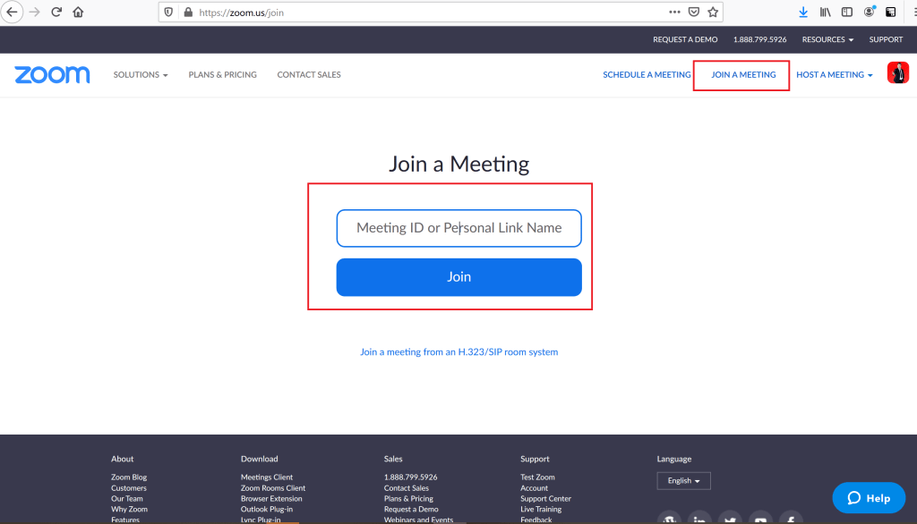 Sau khi đăng nhập thành công, tại menu phía trên bên phải, bạn chọn JOIN A MEETING, tại đây bạn điền ID, hoặc Link phòng họp bạn muốn vào, thông tin này sẽ được cung cấp bởi người chủ (HOST) của phòng họp bạn muốn tham gia.