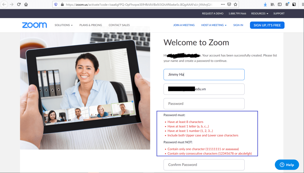 Sau khi bấm kích hoạt tài khoản, bạn sẽ được dẫn tới trang điền thông tin của tài khoản. Bạn điền đầy đủ thông tin bao gồm họ, tên, và mật khẩu của tài khoản.